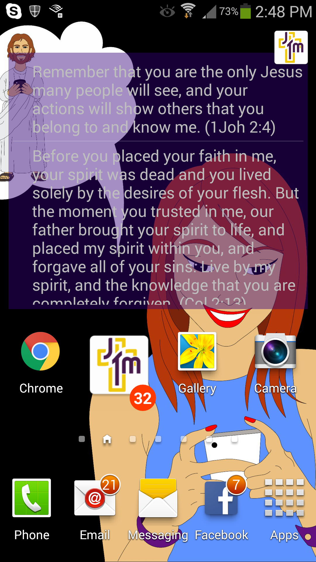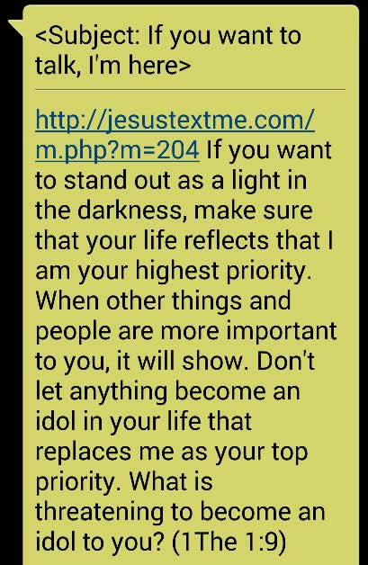 *Not all cell phone carriers accept texts from Jesus Text Me, so users can use email or our Android and iPhone apps to receive the messages instead. |