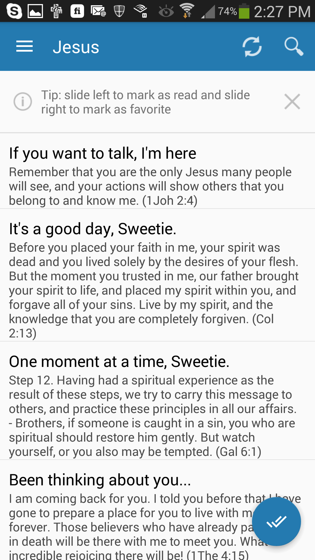 Each message is linked to the underlying scripture passage, so you can take quick breaks to read His Word.